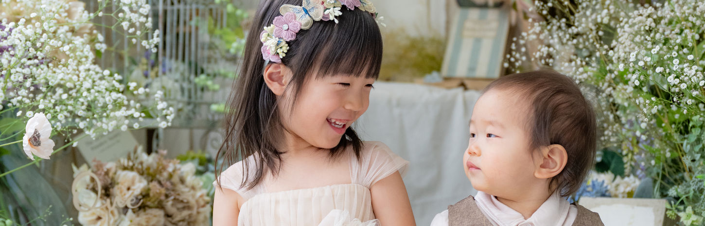 お子様の等身大の可愛い姿を素敵な演出とお庭で撮影します